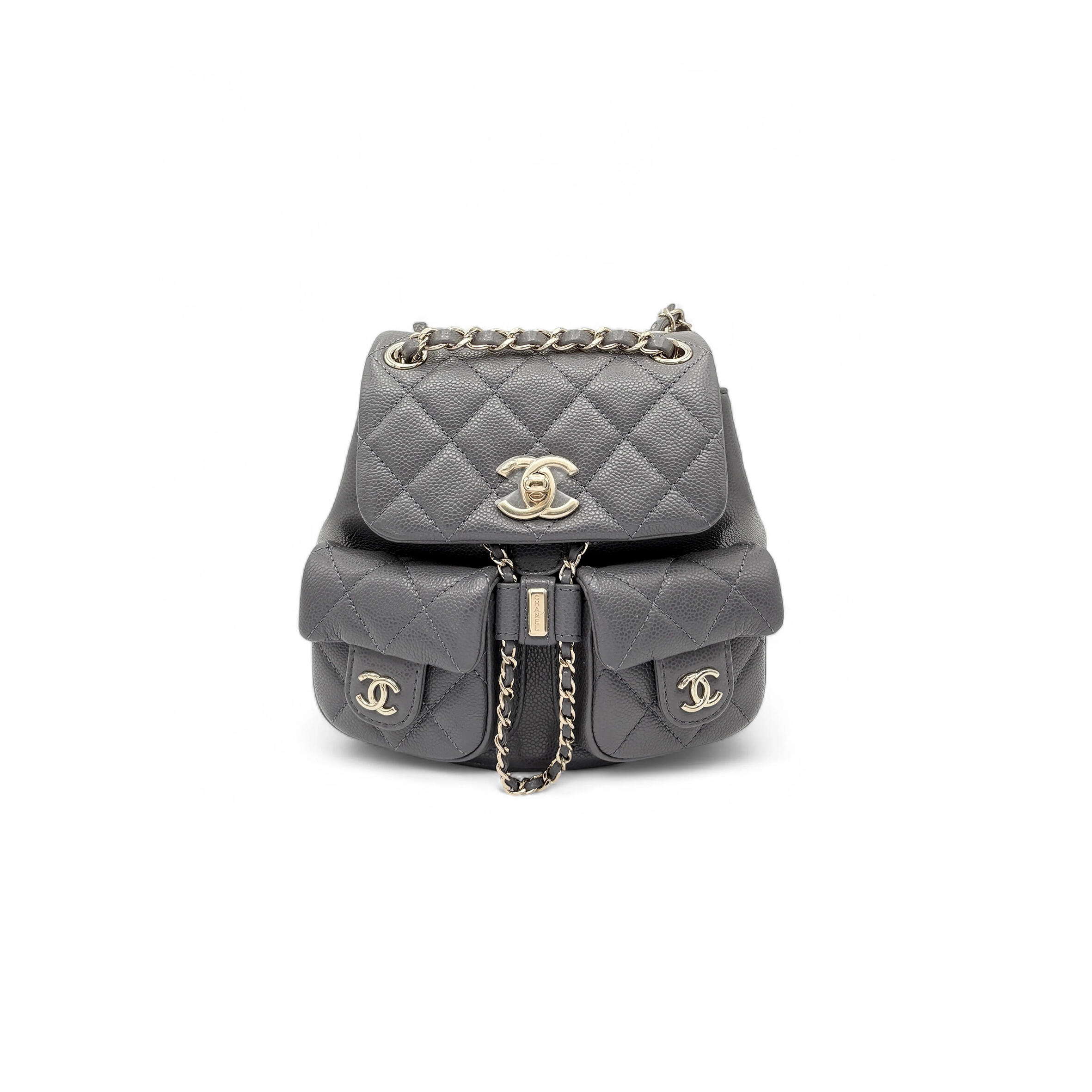 Ch**el SMALL BACKPACK GRAINED CALFSKIN & GOLD-TONE METAL DARK GRAY AS3787 B16981 (17.5*16.5*10cm) Master Quality
