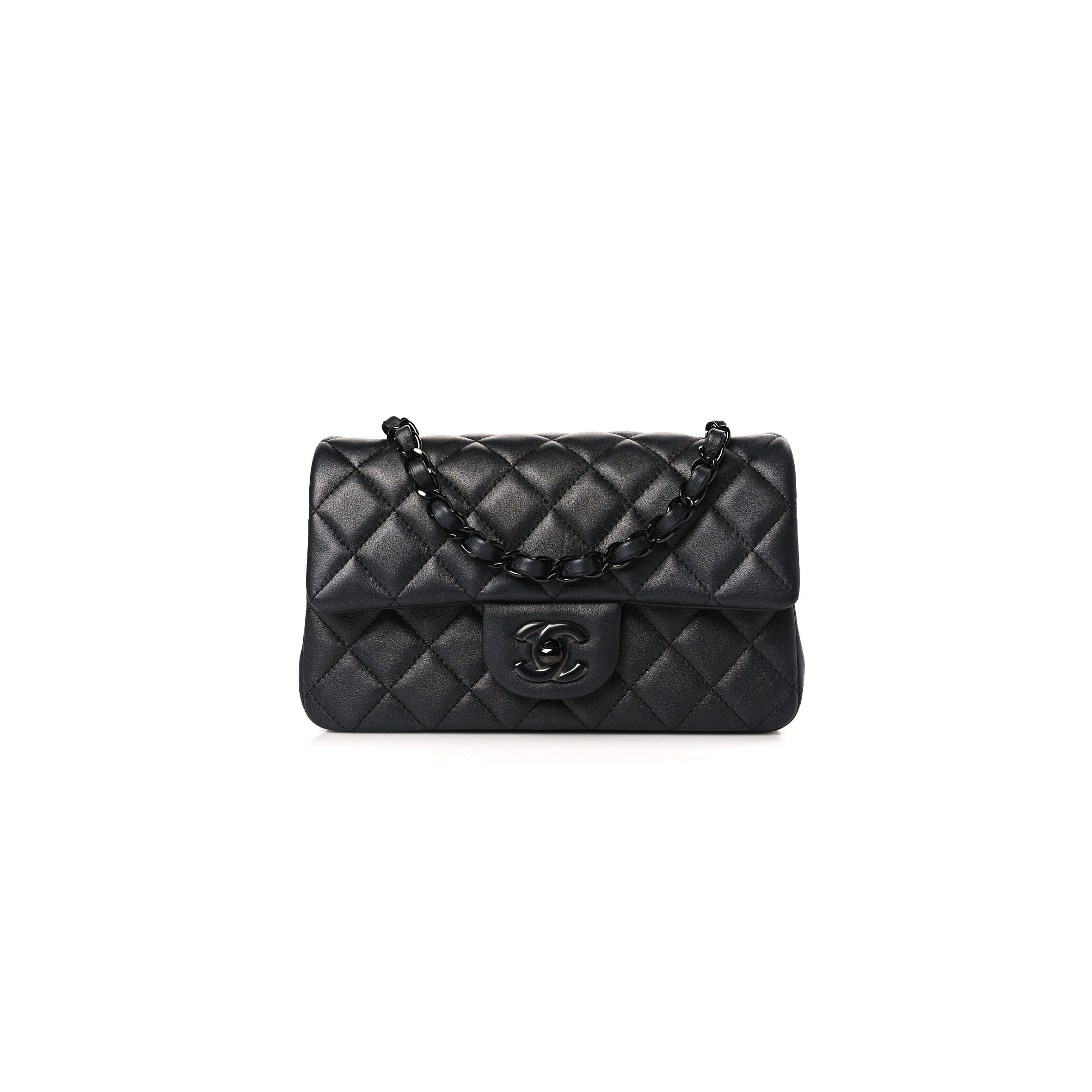 Ch**el LAMBSKIN QUILTED MINI RECTANGULAR FLAP SO BLACK 1312602 (20*12*6cm) Master Quality