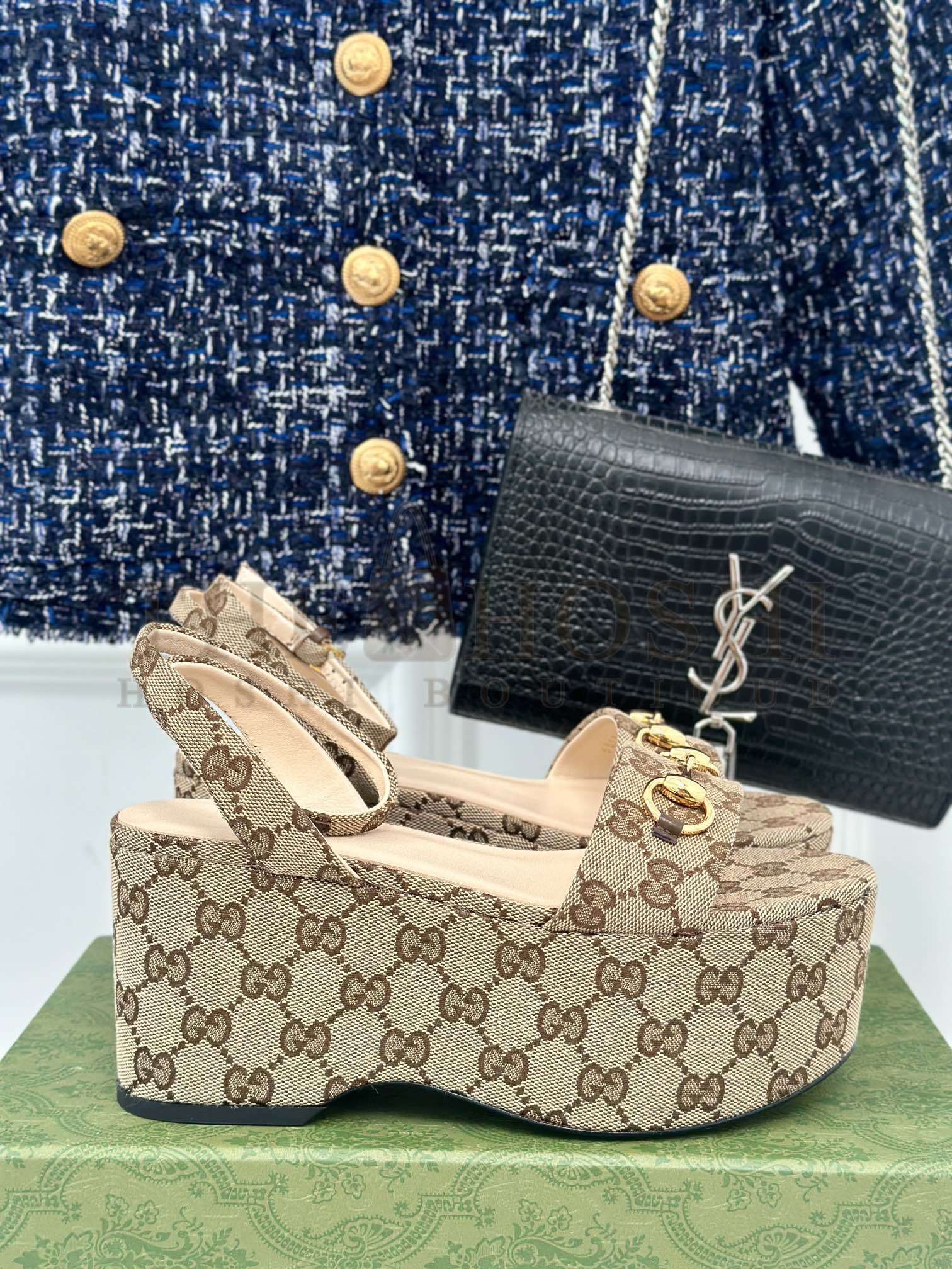Gvc*1 24S spring/summer runway show Horsebit buckle old flower thick bottom sandals Heel height: 7.5cm Master Quality