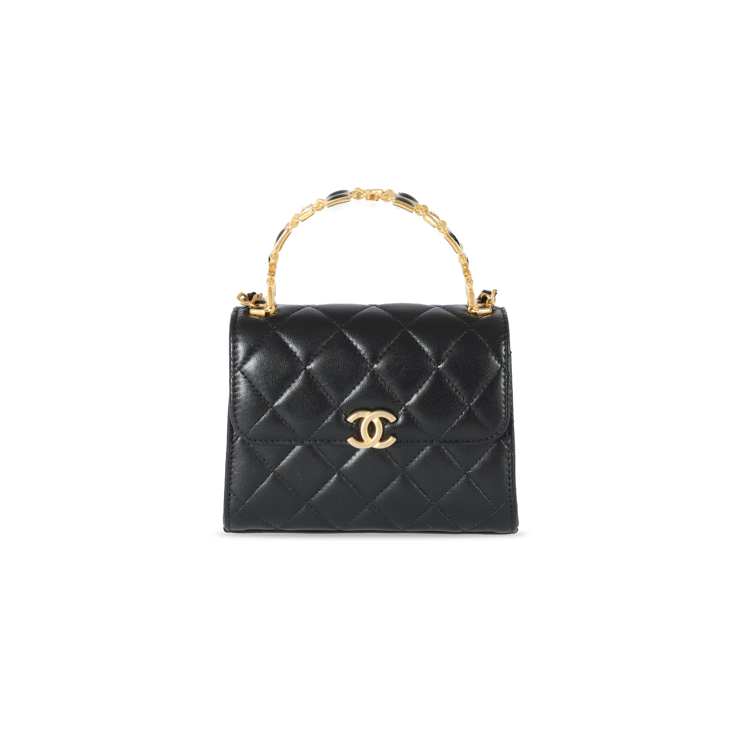 Ch**el Women CC Flap Bag Top Handle Lambskin Gold-Tone Metal Black Master Quality