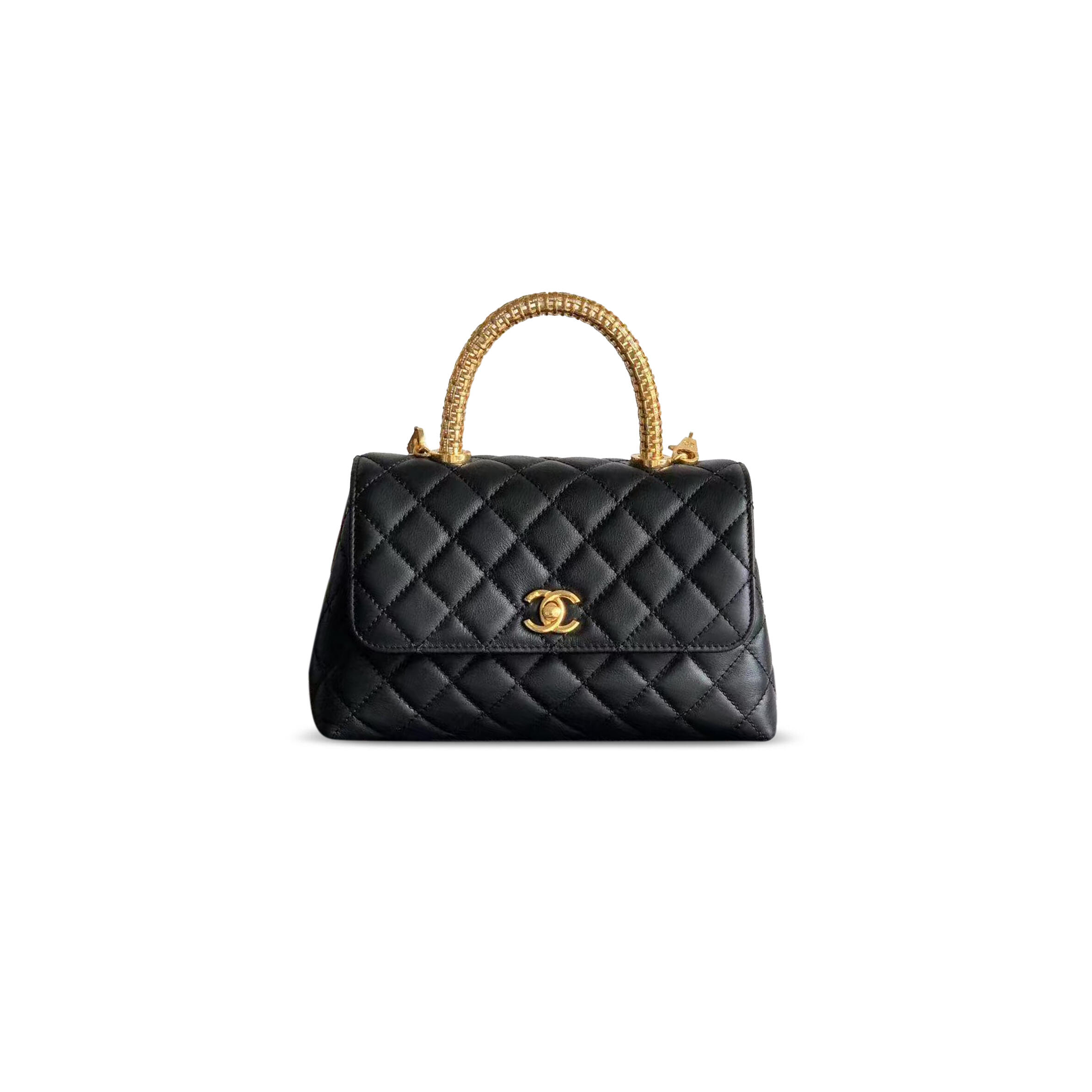 Ch**el CAVIAR QUILTED TRENDY HANDLE CLUTCH WITH CHAIN BLACK (18*14*4cm) Master Quality