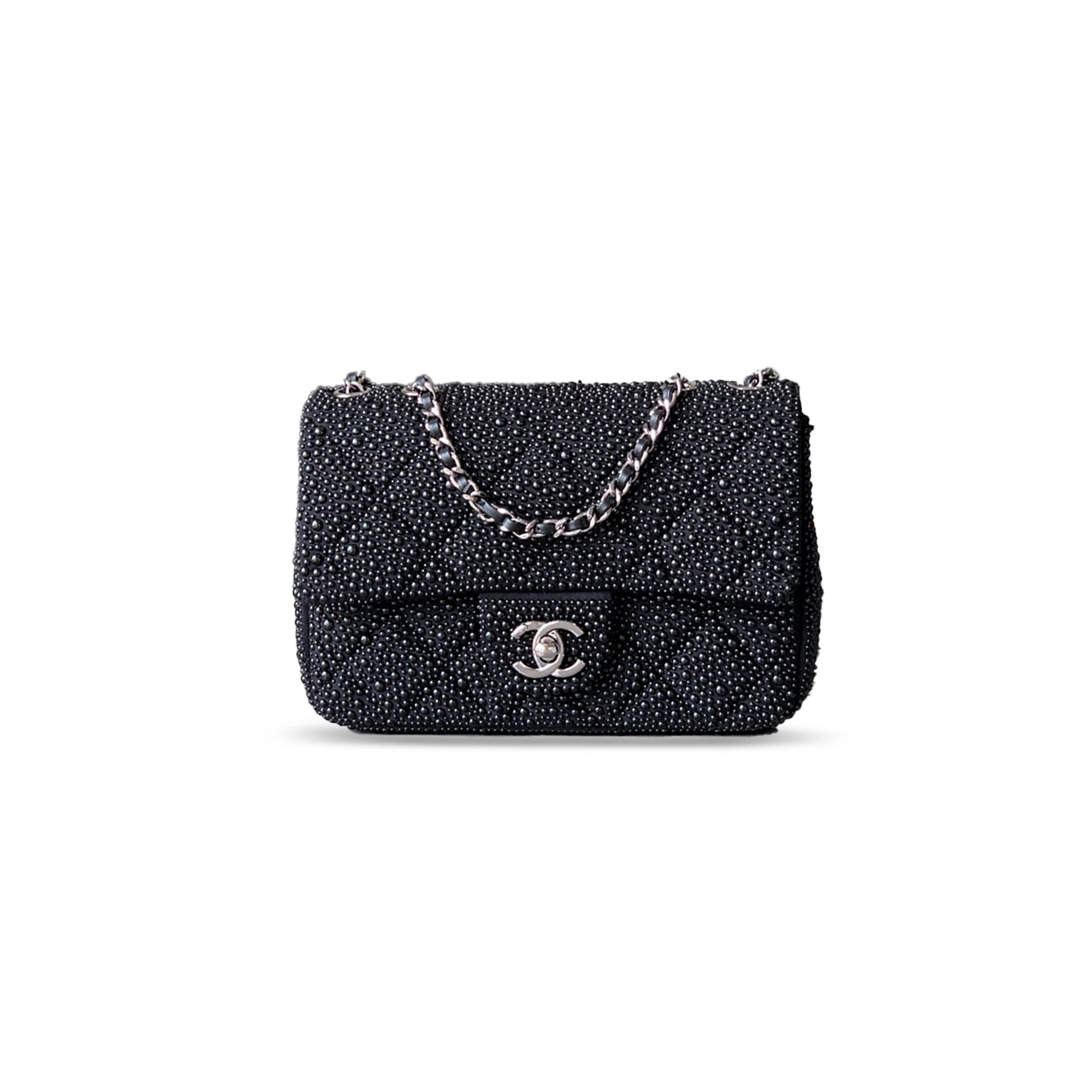 Ch**el MINI EVENING BAG, IMITATION PEARLS & GOLD-TONE METAL BLACK 295850 (20*10*7cm) Master Quality