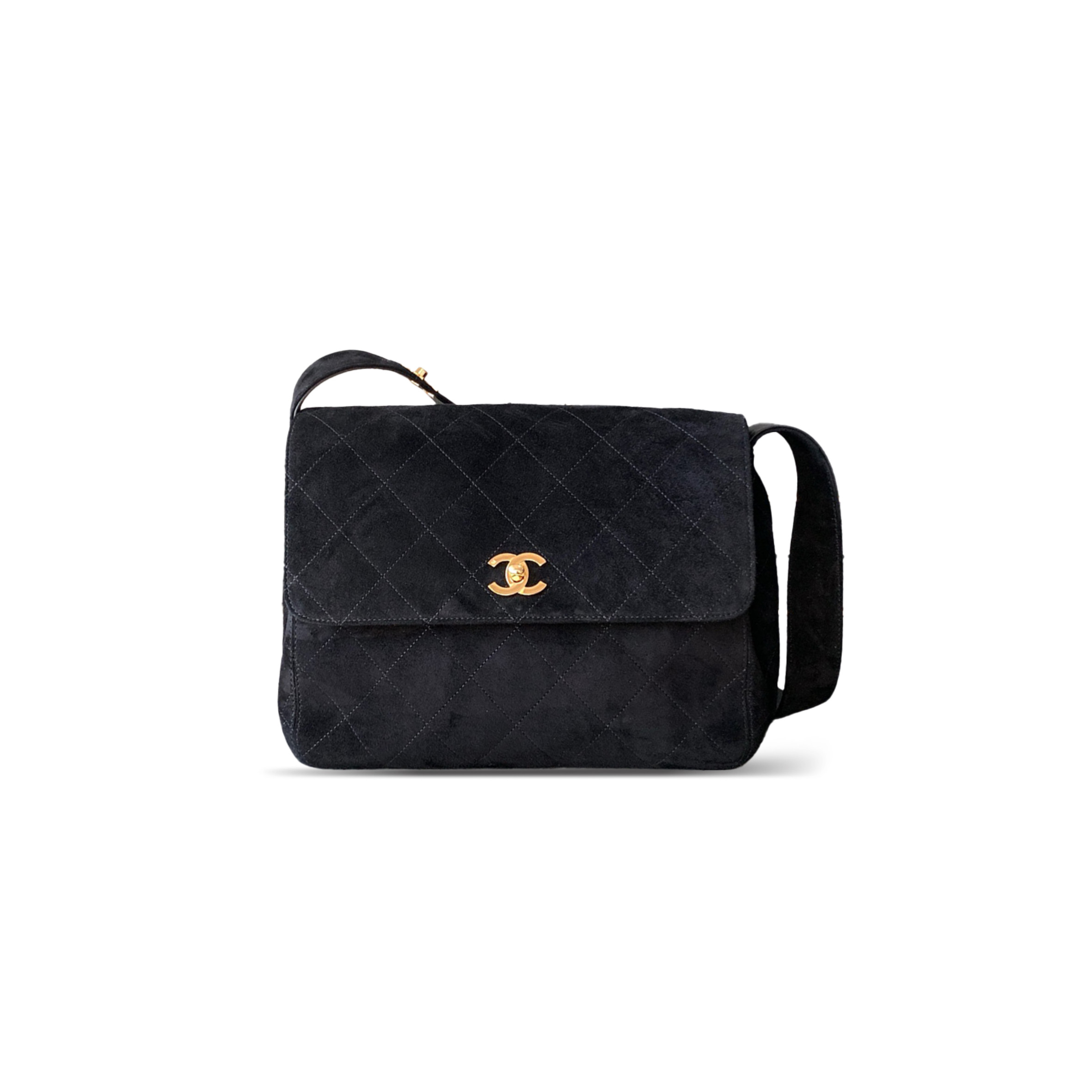Ch**el VINTAGE SUEDE QUILTED FLAP SHOULDER BAG BLACK A99935 (28*24*12.5cm) Master Quality