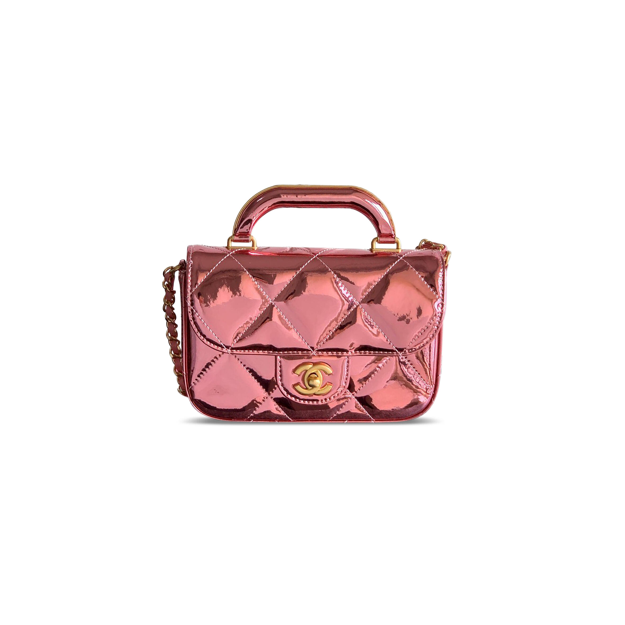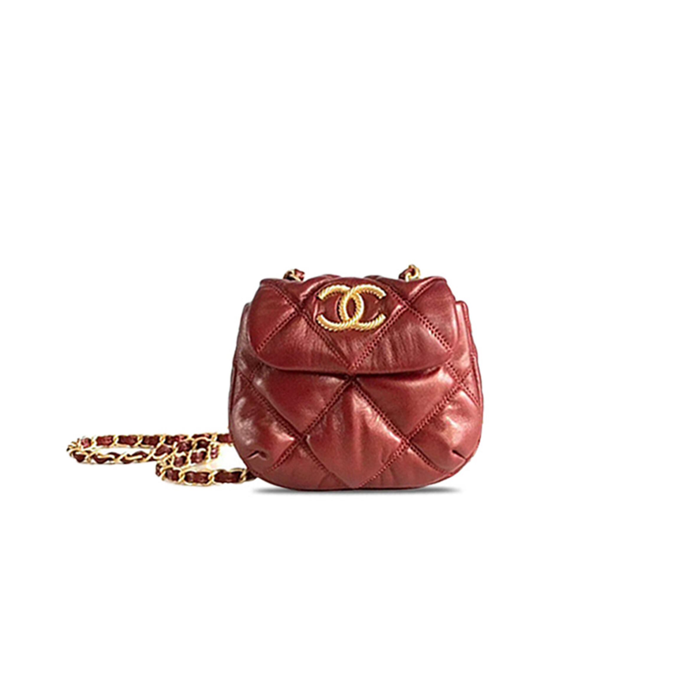 Ch**el LAMBSKIN QUILTED MINI TOP HANDLE RECTANGULAR FLAP GOLD BURGUNDY 1106350 (20*13*6cm) Master Quality