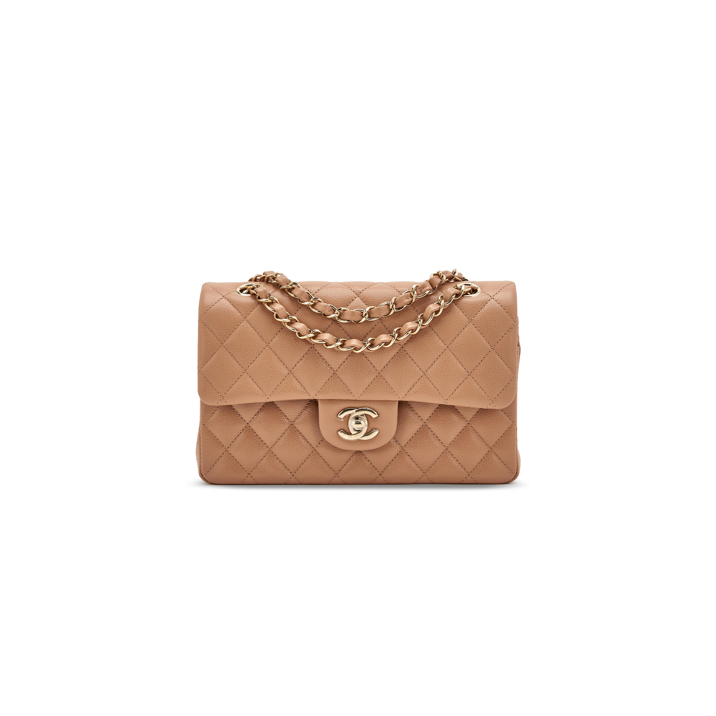 Ch**el QUILTED CAVIAR SMALL CLASSIC DOUBLE FLAP BAG DARK BEIGE 203204 (23*14.5*6cm) Master Quality