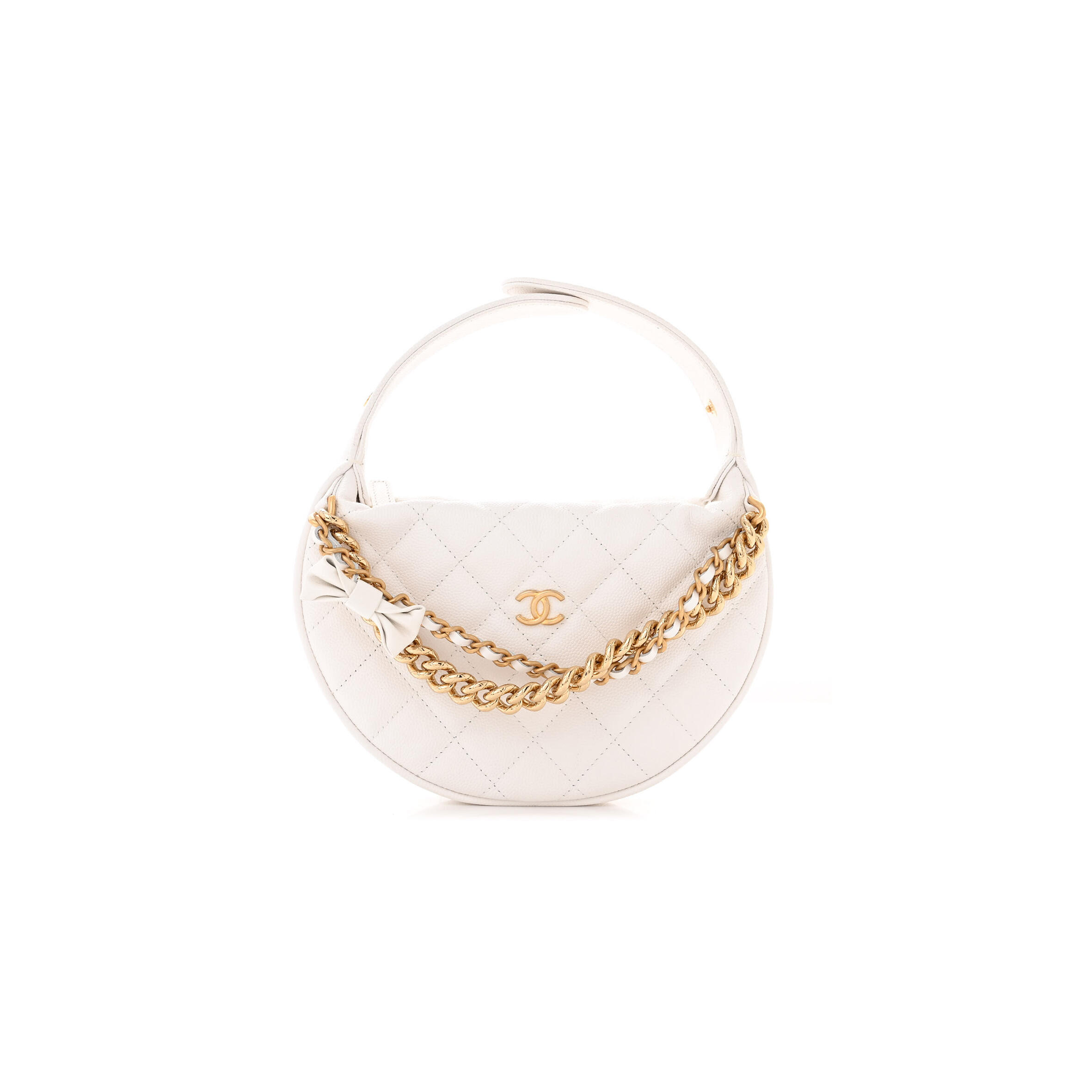 Ch**el SHINY CAVIAR QUILTED BOW POUCH HOBO WHITE 1470676 (19*13*4cm) Master Quality