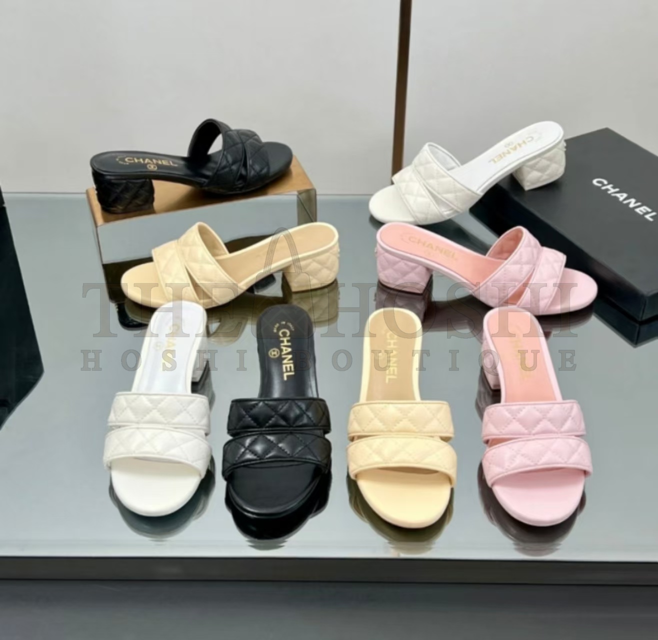 Ch**el 25S Lambskin Round - Toe Block - Heel Mule Sandals 5cm Heel Master Quality