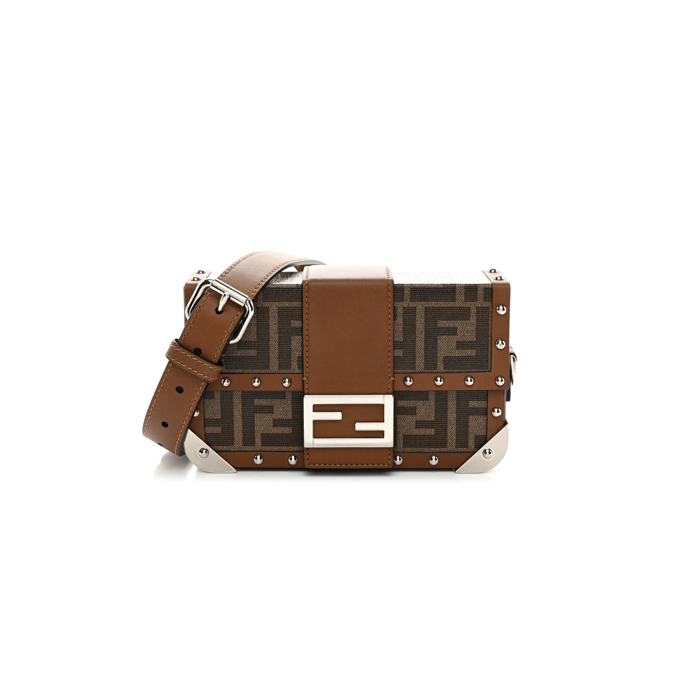 F**di BAGUETTE TRUNK BAG ZUCCA COATED CANVAS MINI BROWN 7VA507A8V3F18AT (19*11*4cm) Master Quality