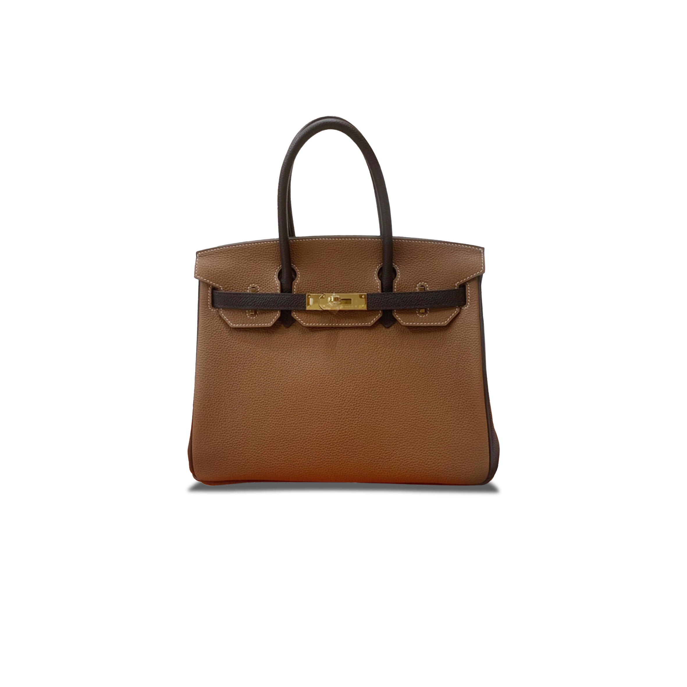 H**me5 BIRKIN 25 TOGGLE LEATHER EBONY AND KHAKI GOLD BUCKLE BK2537TGGP (25*20*13cm) Master Quality