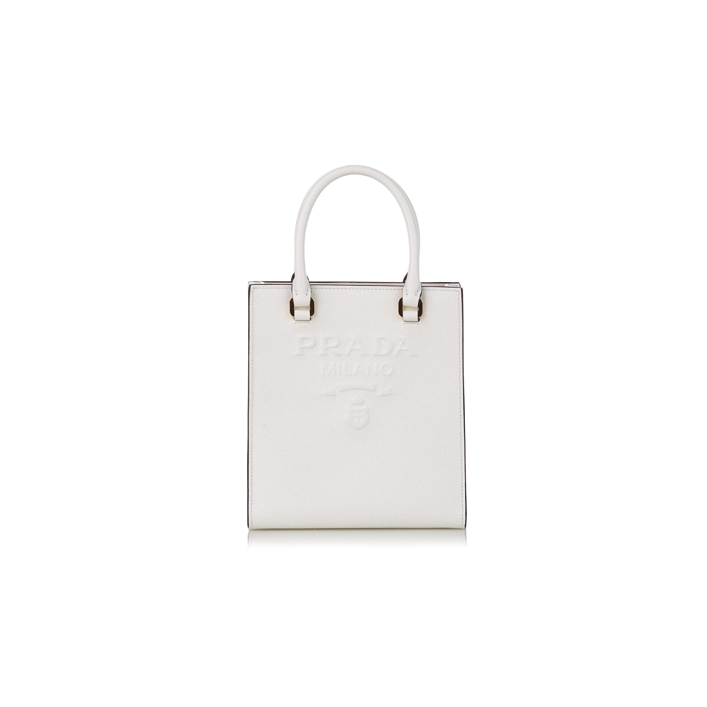 Pra*a Mini Galleria Bag In White Saffiano Leather Master Quality